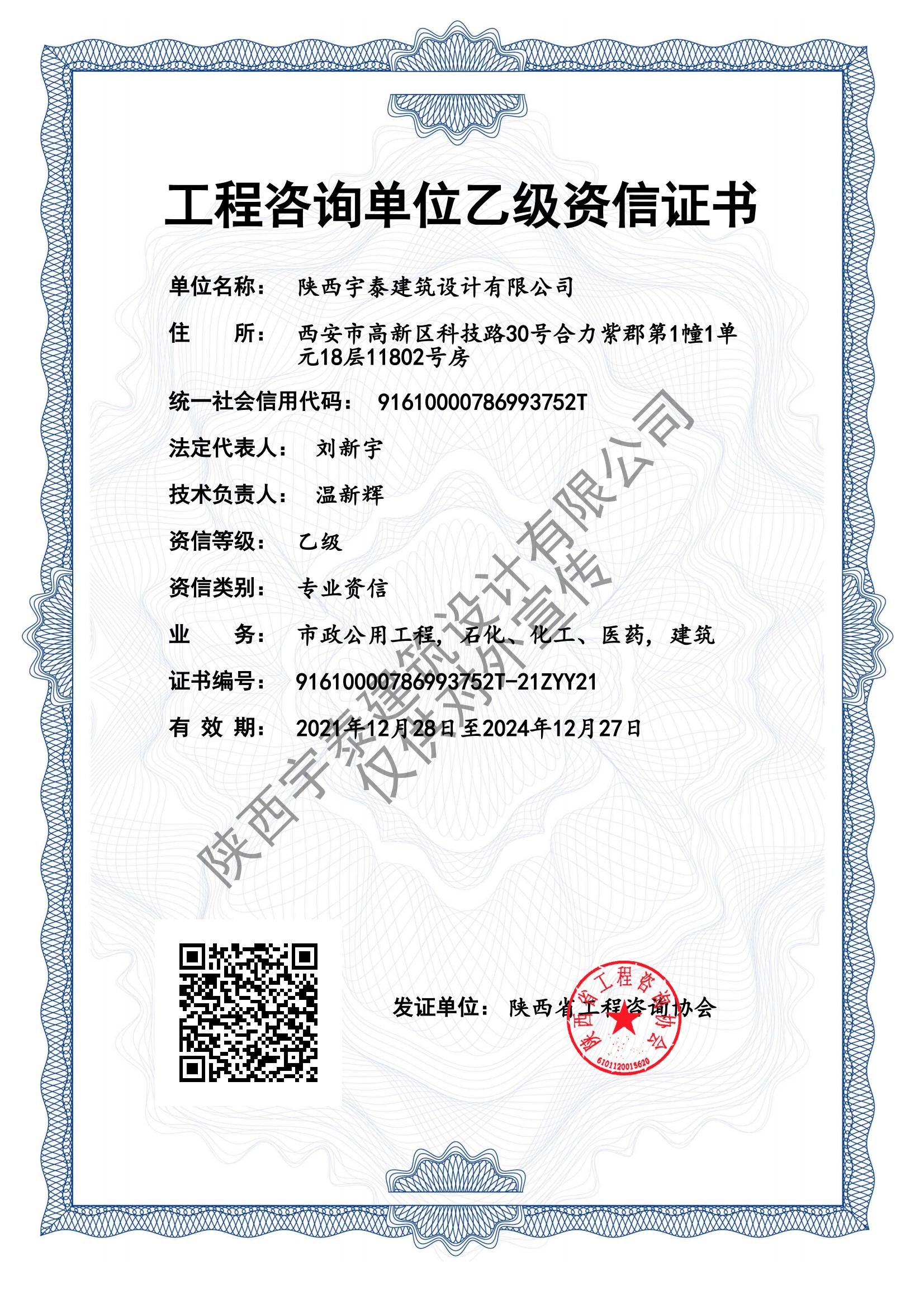 • 熱烈祝賀陜西宇泰建筑設(shè)計有限公司工程設(shè)計資..
